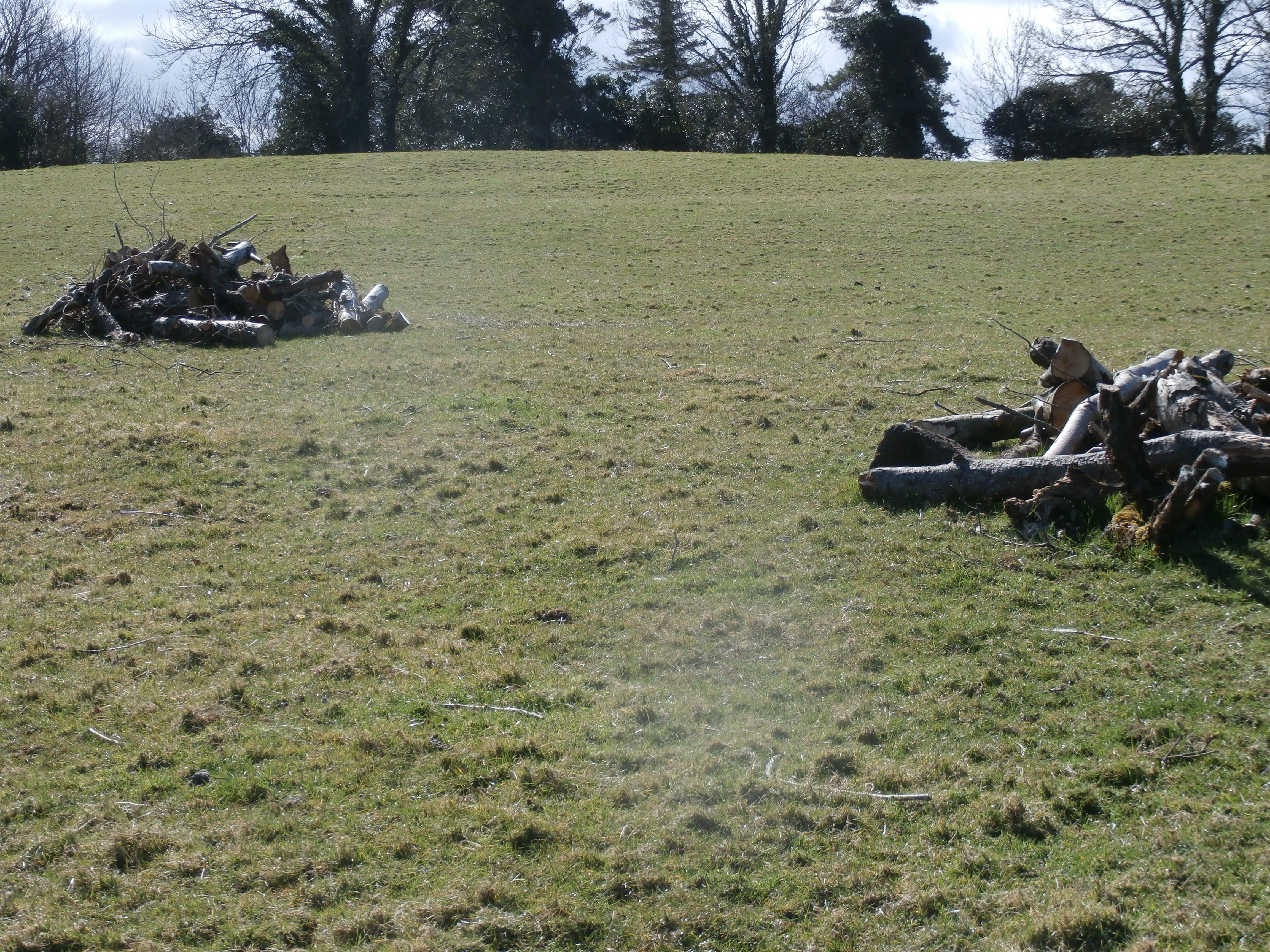 The branches were piled up in the field