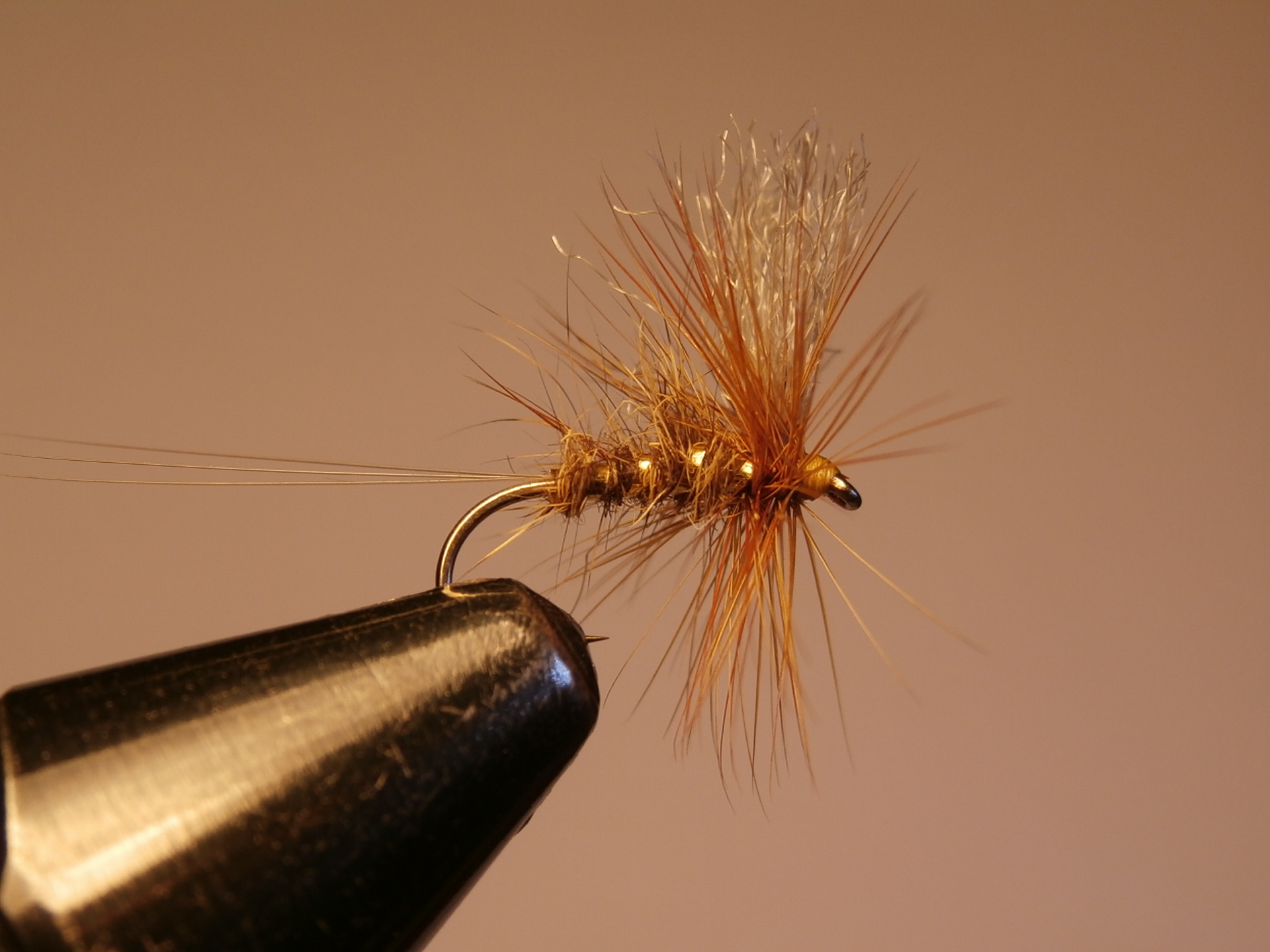 A very old pattern, the GRHE still warrants a place in you dry fly box, especially when olives are hatching in the spring. You have probably noticed that I tie my dry flies with synthetic wings. This is so they are stronger and it also gives me the option of changing the wing colour to pink of lime to aid sighting in difficult light conditions. My days of tying double split wings are well and truly over!