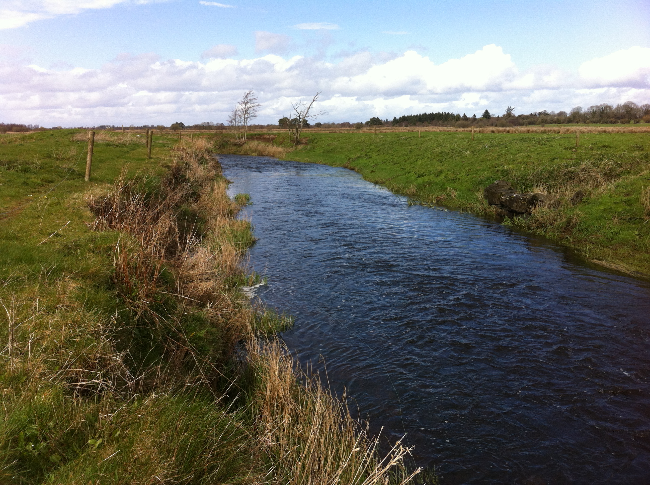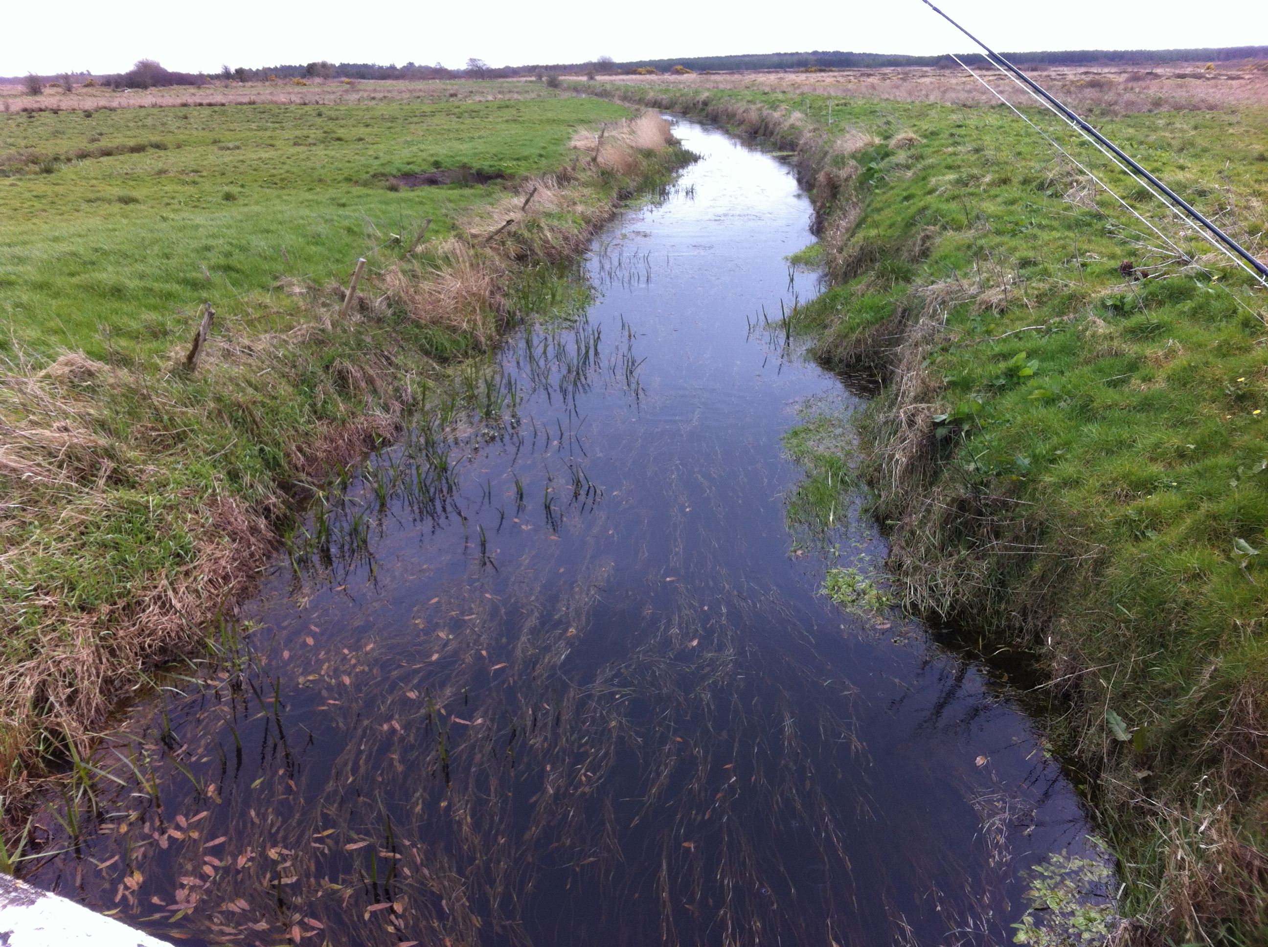 Ireland is criss-crossed with drains like this. Without them much of the agricultural land would be bog, so I can see why they are so necessary. I do have misgivings about draining every square inch of land though and these drains funnel large volumes of water into river systems, creating problems further downstream. From an anglers point of view drains are a royal pain. While some of them have been bridged the vast majority have to be navigated by wading or in the case of the smaller ones, jumping. Some drains are death traps; deep and with soft, silty bottoms. This one would have been very hard to cross but luckily there was a good bridge over it so I decided to fish the left bank for an hour.