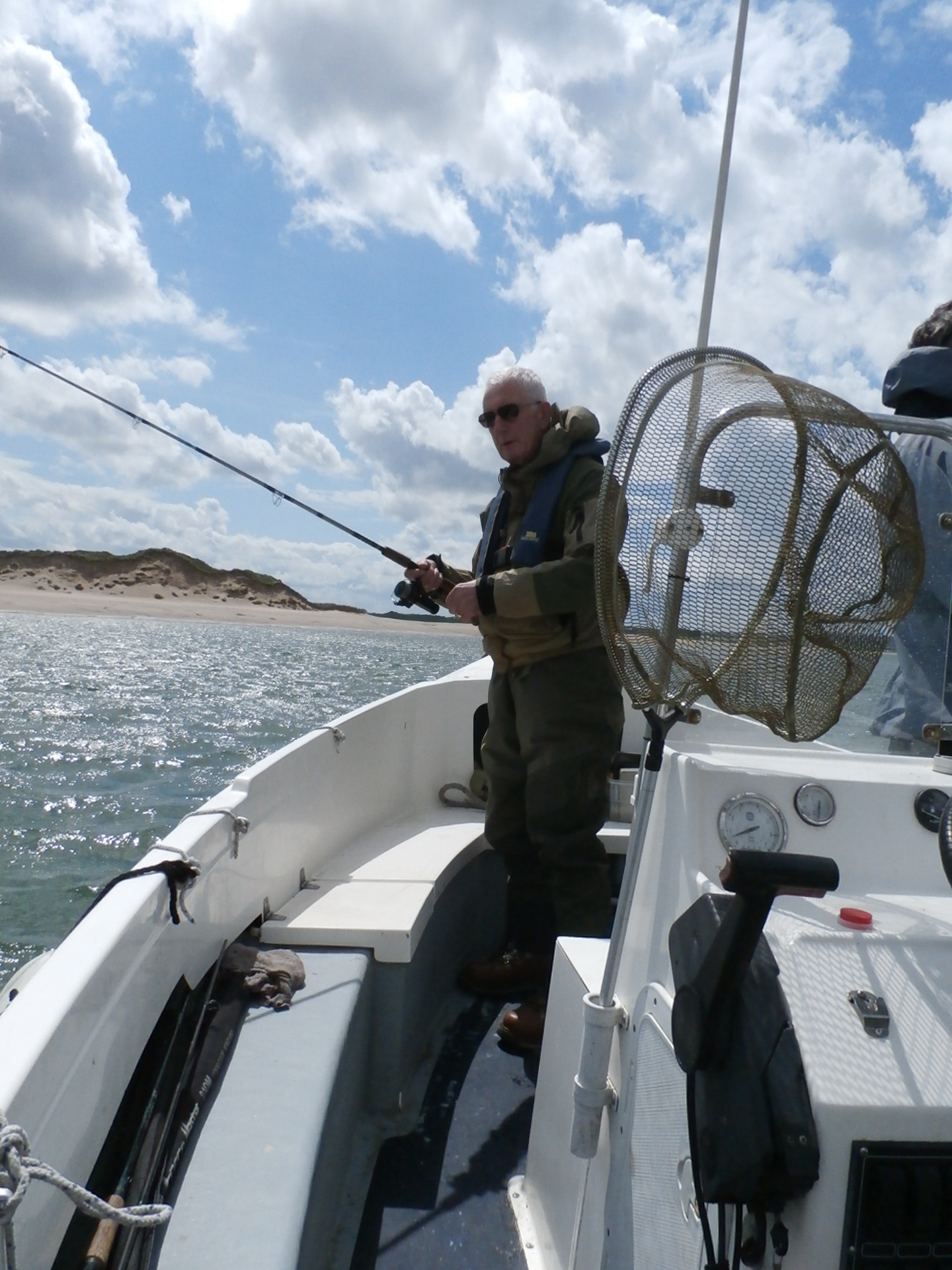 Fishing ceases at high and low water when the flow stops altogether. We used that time to have a stroll on Bartra Island, admiring the wonderful view and taking some photos. We also caught some sandeels for bait in the afternoon, Malcolm showing us how to handle the small net in a quiet backwater close to the harbour. There were an awful lot of very small eel and only a few mature ones but we got enough to keep us supplied for the afternoon session.