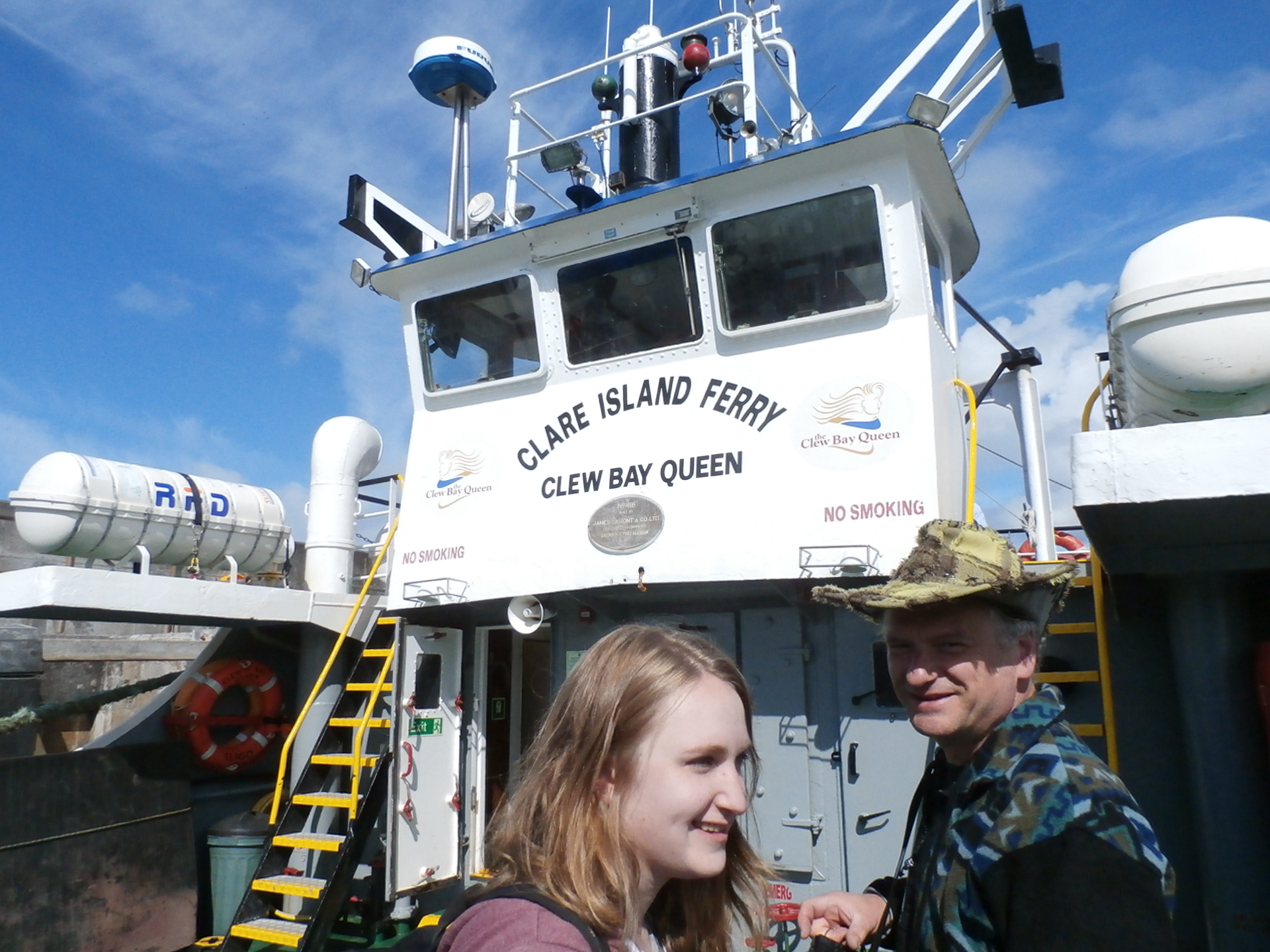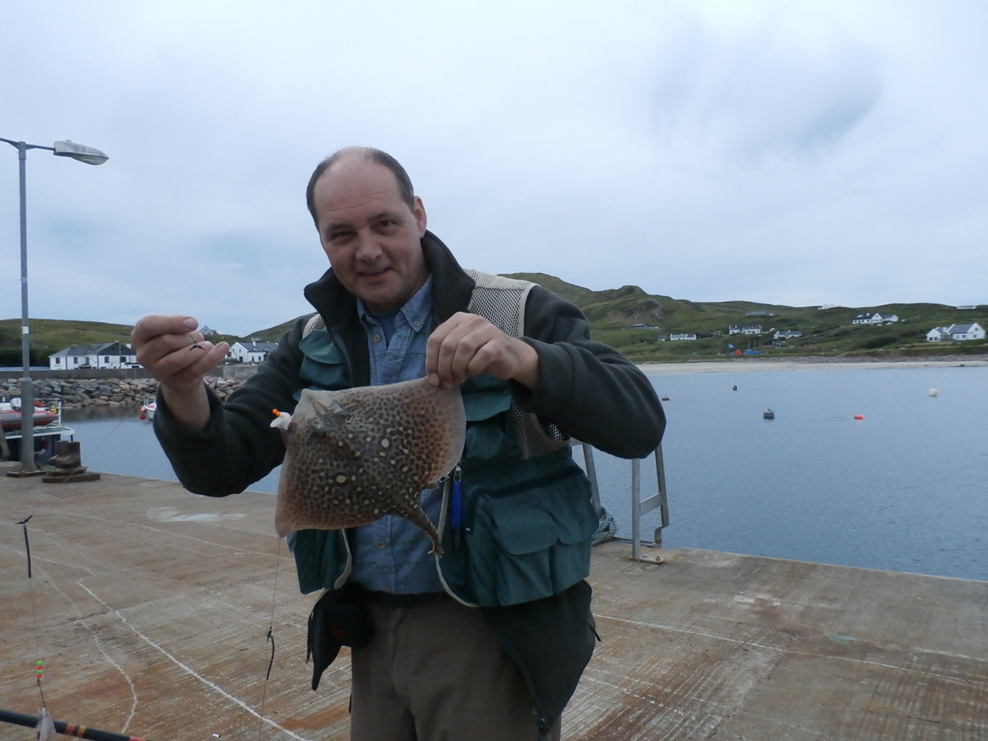 Saturday was a beautiful day in the West of Ireland with light winds and high clouds breaking up the sunshine occasionally. The ferry leaves from the busy little pier in Roonagh and we lugged the tackle down the steps and on to the bulky ship full of anticipation. Twenty minutes later we jumped off and took the very short stroll to the end of the pier. Targets for today would be Pollack and maybe some rays or flats on the sandy bottom. This was very easy fishing, no long walks or scary descents to slippery rock ledges. Just drop the lines over the side and see what was down there.