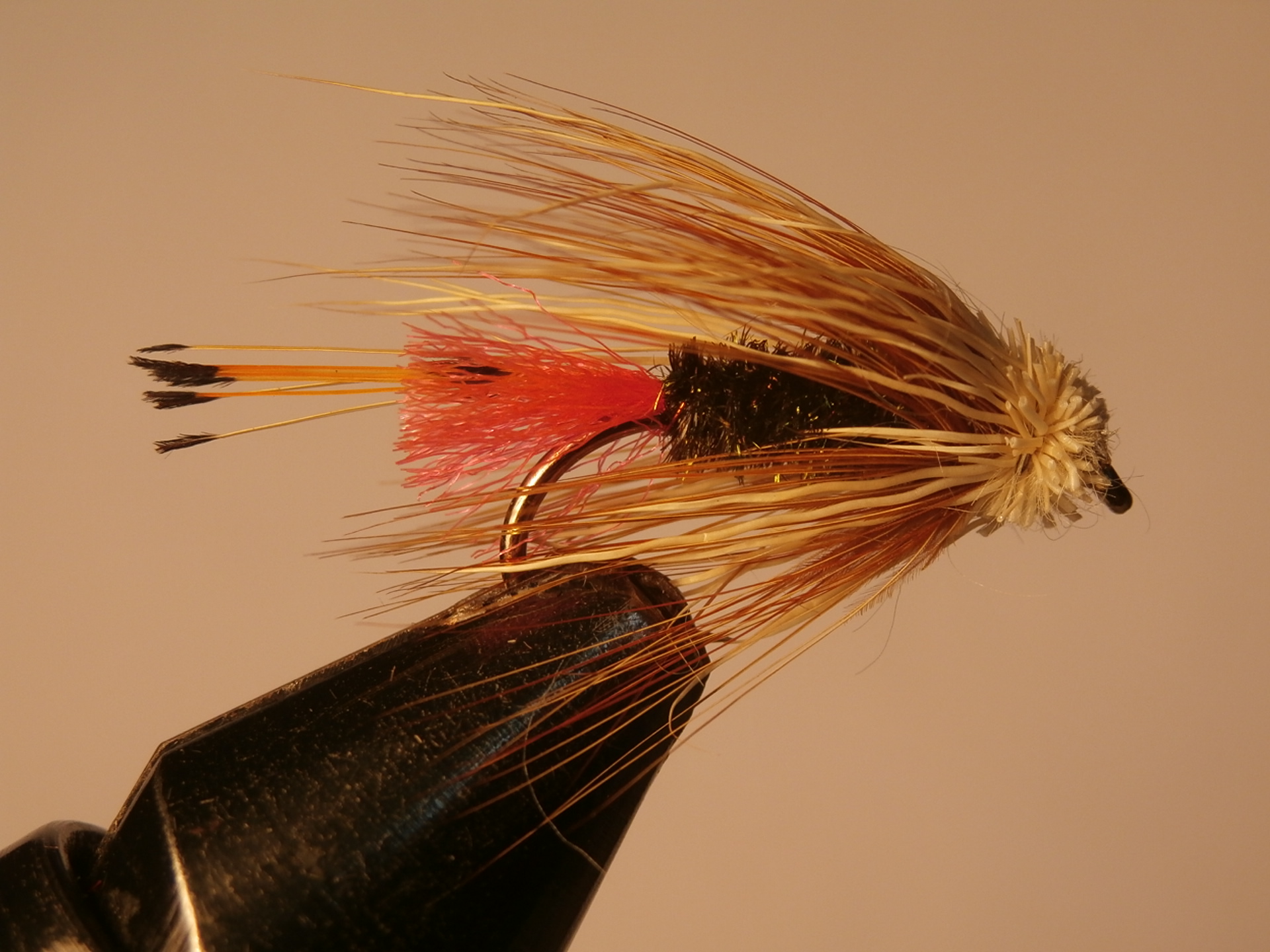 Another Ke-He, this time one with a white muddler head. This looks a wee bit like that great old campaigner the White headed Loch Ordie, a great killer in the gloamimg on highland lochs.