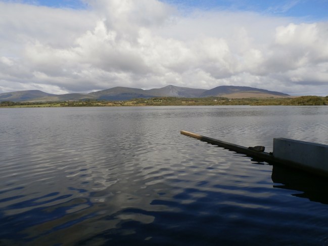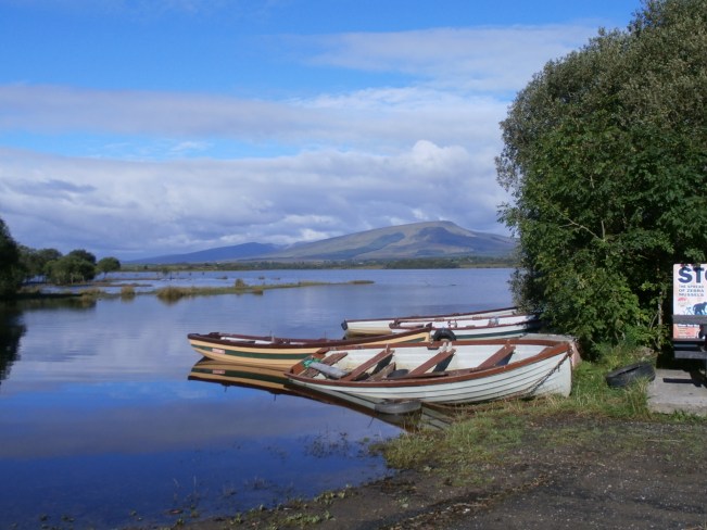 I borrowed a van and trailer and headed for the lake around 10am in glorious sunshine. I used to live very near to the lake so I know the people in the houses as I drove along the quiet road past the fields of cattle and sheep. I mulled over that strange sense of belonging yet being apart which every ‘blow in’ feels here in the West. Out the Newport Road and those never-ending roadworks which have kept Mick O’Malley’s lads so busy all summer and along the new stretch at the back of Cornanool before taking the Bangor road off to the right. The first views of Nephin and those deceptive bends at the Glenisland National School. Through the still green trees with the river on the right, now thankfully back down to a normal level. The land was very wet but still retained that vibrancy of well tended farmland. Then along the edge of the lake and the temptation to look at the water instead of the road! I swung the wheel hard left and drove into the harbour carpark.