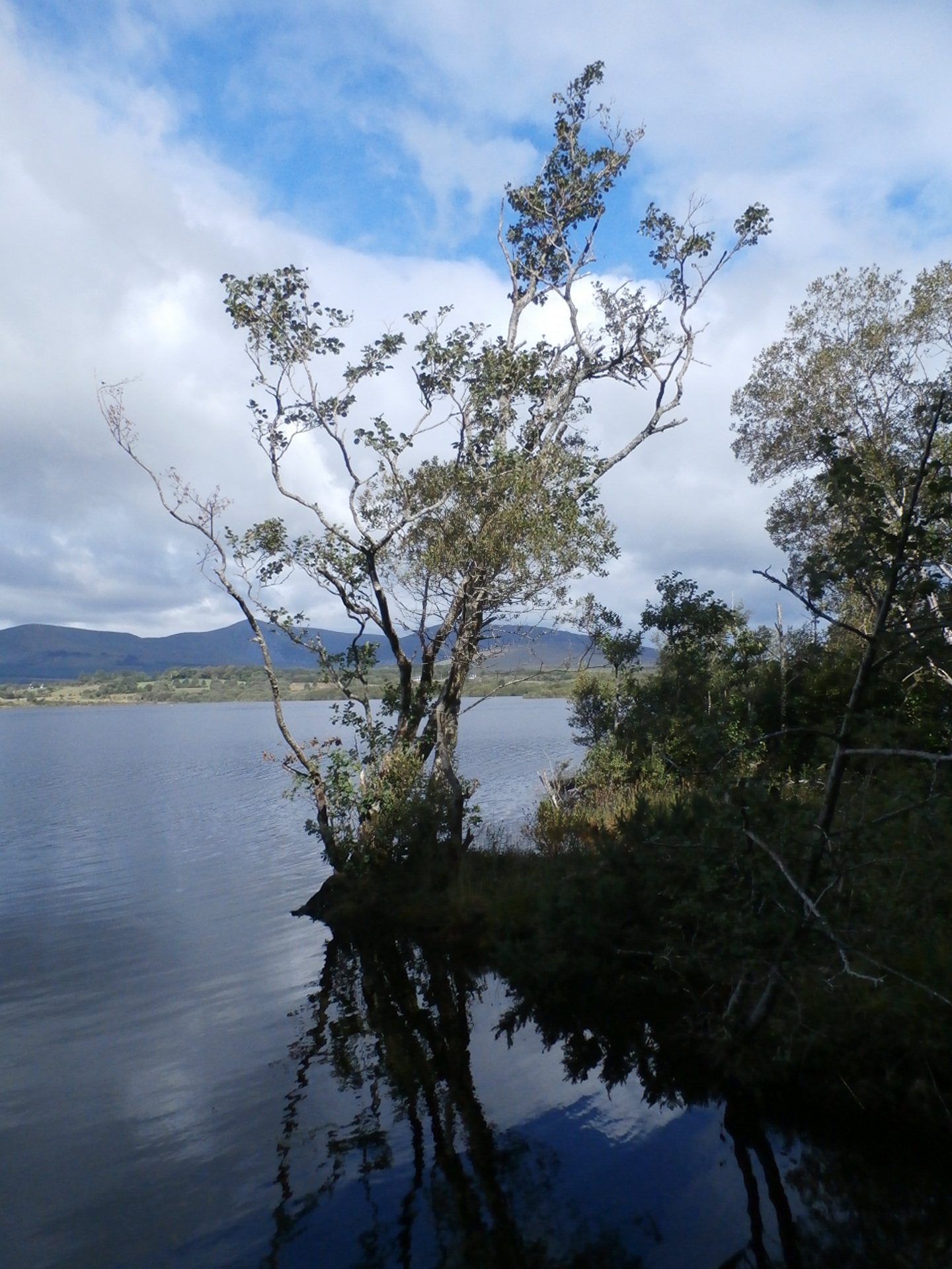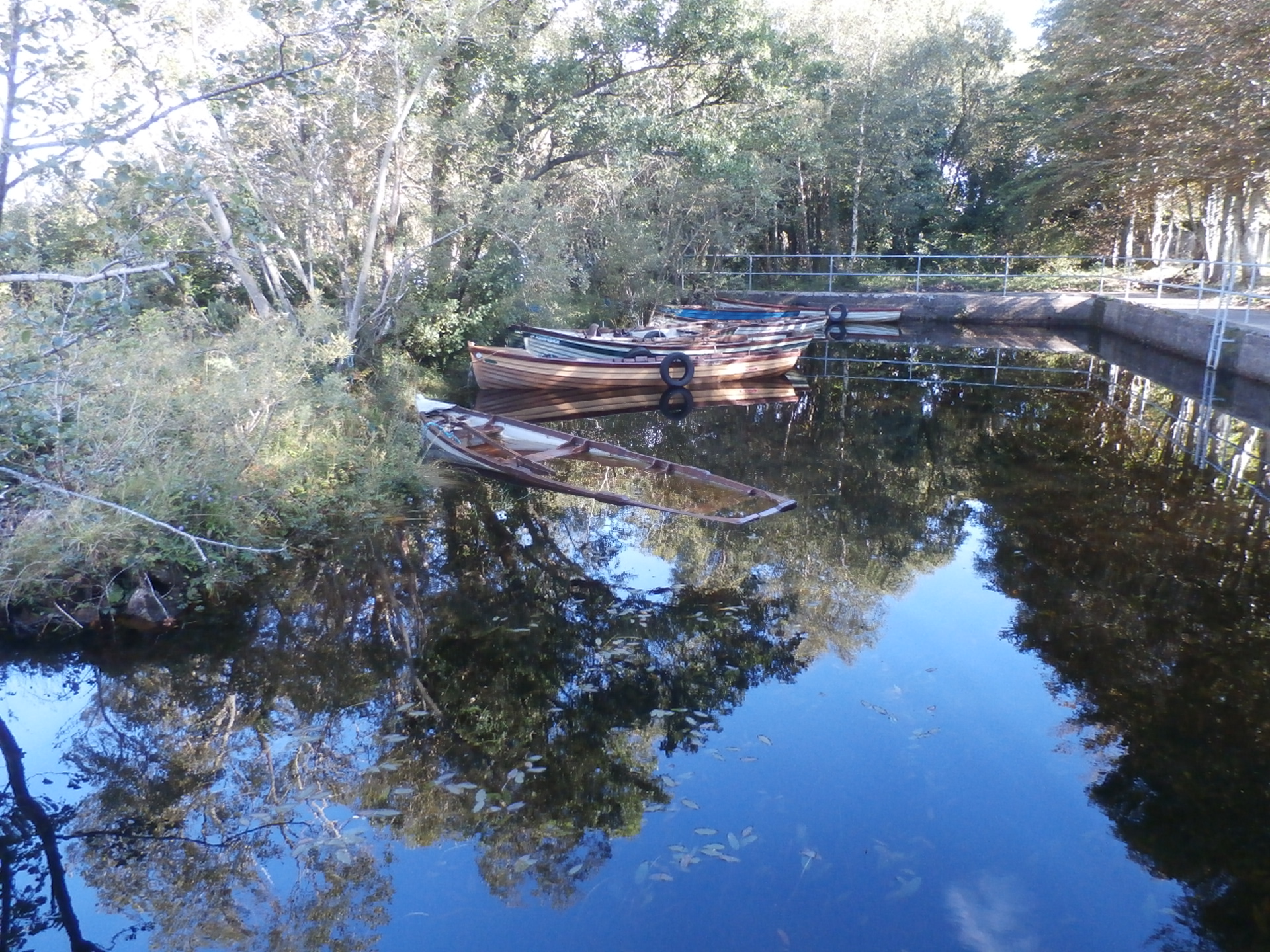 I borrowed a van and trailer and headed for the lake around 10am in glorious sunshine. I used to live very near to the lake so I know the people in the houses as I drove along the quiet road past the fields of cattle and sheep. I mulled over that strange sense of belonging yet being apart which every ‘blow in’ feels here in the West. Out the Newport Road and those never-ending roadworks which have kept Mick O’Malley’s lads so busy all summer and along the new stretch at the back of Cornanool before taking the Bangor road off to the right. The first views of Nephin and those deceptive bends at the Glenisland National School. Through the still green trees with the river on the right, now thankfully back down to a normal level. The land was very wet but still retained that vibrancy of well tended farmland. Then along the edge of the lake and the temptation to look at the water instead of the road! I swung the wheel hard left and drove into the harbour carpark.