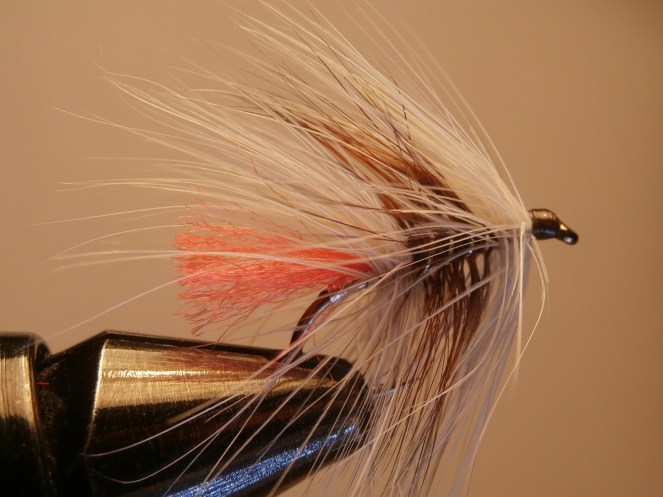 Next we have a variant of the Clan Chief, this one is tied in Fiery Brown colours. It is sporting a couple of strands of twinkle in the tail too and the head hackle comes from a grouse body feather. I tie this on a size 8 for salmon but there is no reason why it would not work for brownies on a size 12.
