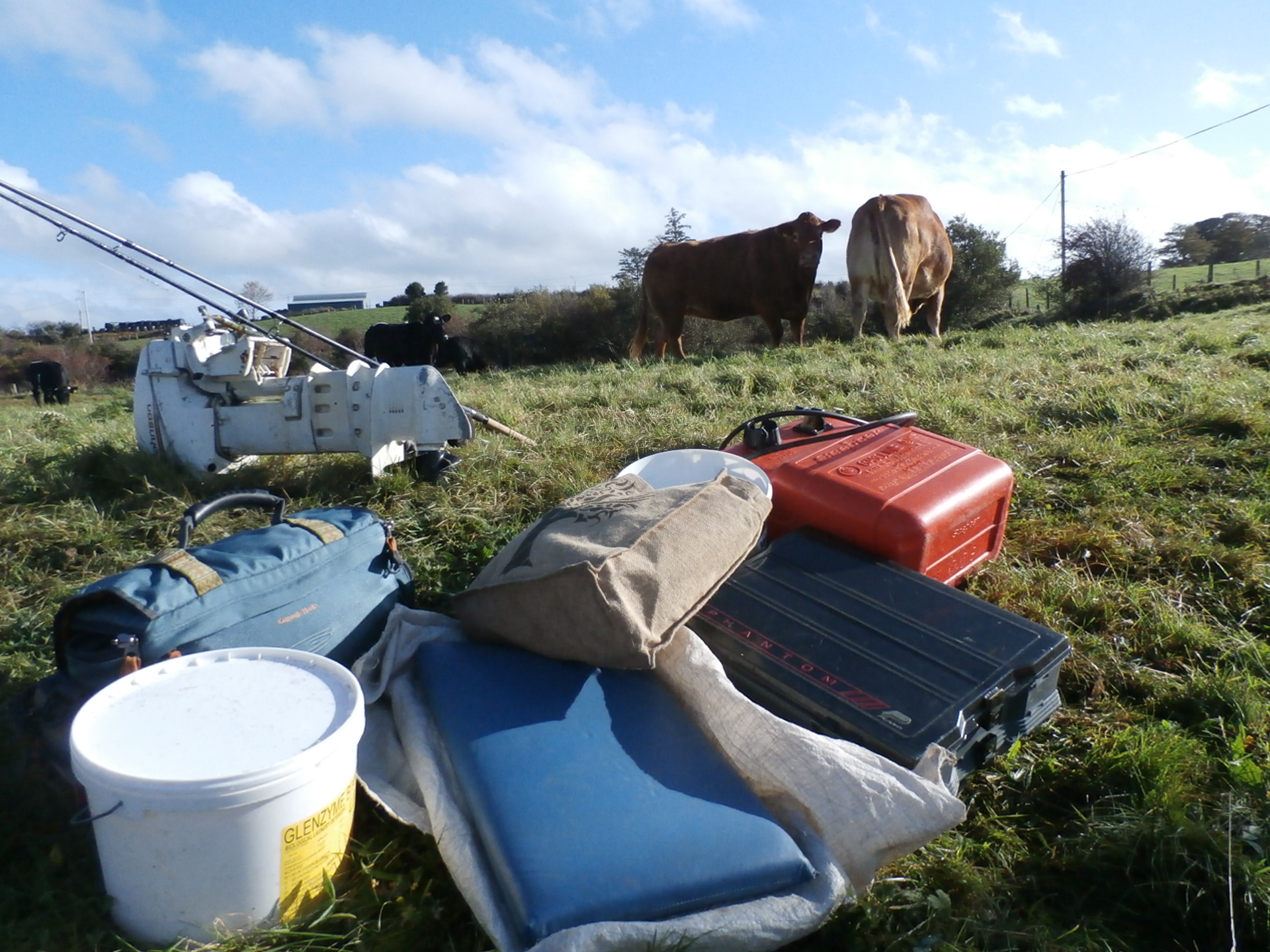The boat was moored across a field from where I parked the car and the normally empty field had a couple of inhabitants today in the shape of fairly sturdy cattle who couldn’t resist a close inspection of my portable mountain of gear.
