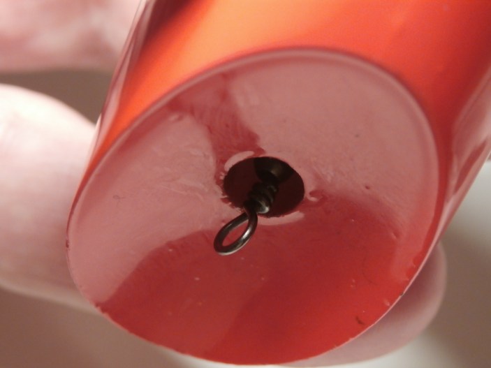 Measure the length of the trace by offering it up through the hole and marking the point where the eye of the hook needs to be. You want the swivel to poke out of the head end of the hole.