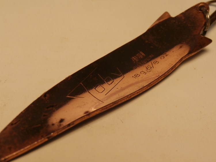 A small brownie leaped two feet into the air close to the stern as we drifted but of the silver lads there was not a trace. After a few drifts the wind dropped to a mere zephyr so we opted for dragging the ironmongery around. Tobies were the obvious choice so 10 and 18 gram models were given a swim. On dark days like this I like to use a copper spoon, but on Sunday it failed to elicit any response. A silver Toby was given its chance to shine but was similarly ignored. This was hard going!