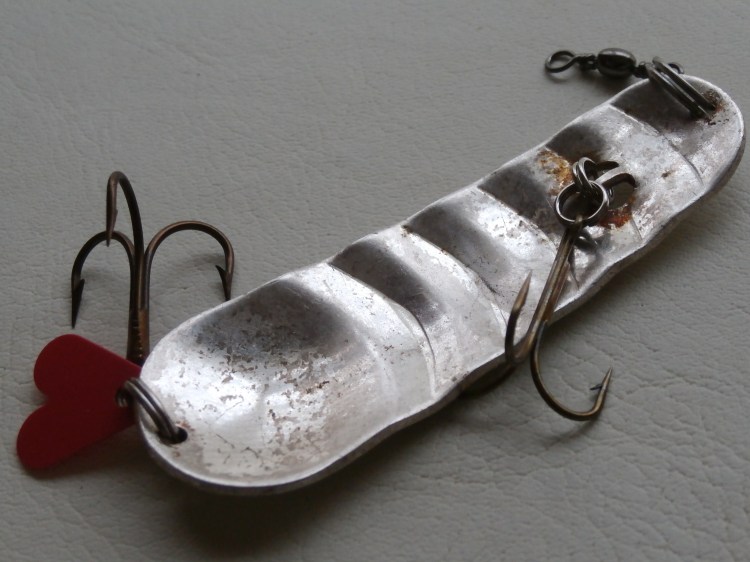 There you go, a finished spoon. In a world of fancy thru-line, holographic printed 10 inch glide baits this old school spoon looks to be a very poor relation but it still catches Pike for me.