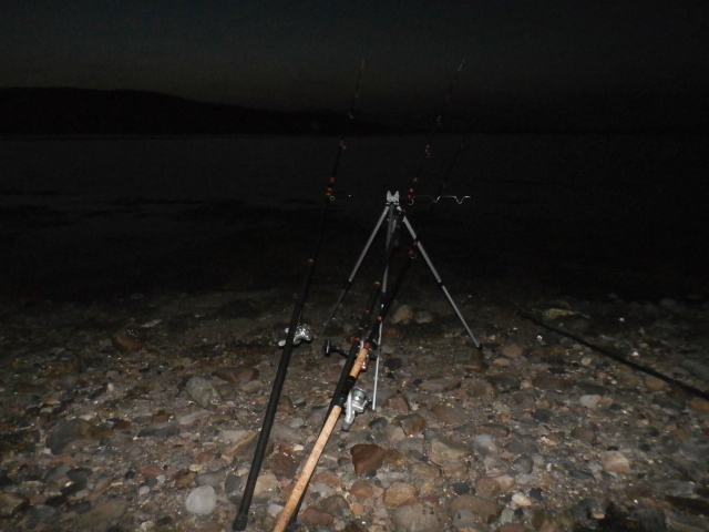 This is a low water mark, one which fishes best the hour before low tide to the first hour of the rising water but beggars can’t be too choosy and I fish through the rising tide last night. Both beachcasters were in action. The big fixed spool on my 4 ounce and the 6500C on my heavier 6 ounce. Long casts are neither necessary nor sensible at night, as the fish will come closer in the darkness. Gentle, controlled lobs are preferred.