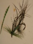 Hackle: lots of turns of a grizzle cock hackle dyed green