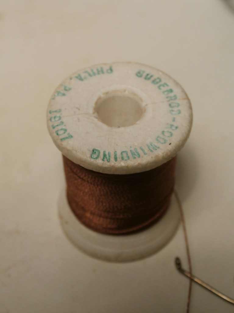 Rib: thick brown silk. I use rod whipping silk which has a nice colour and is very strong.