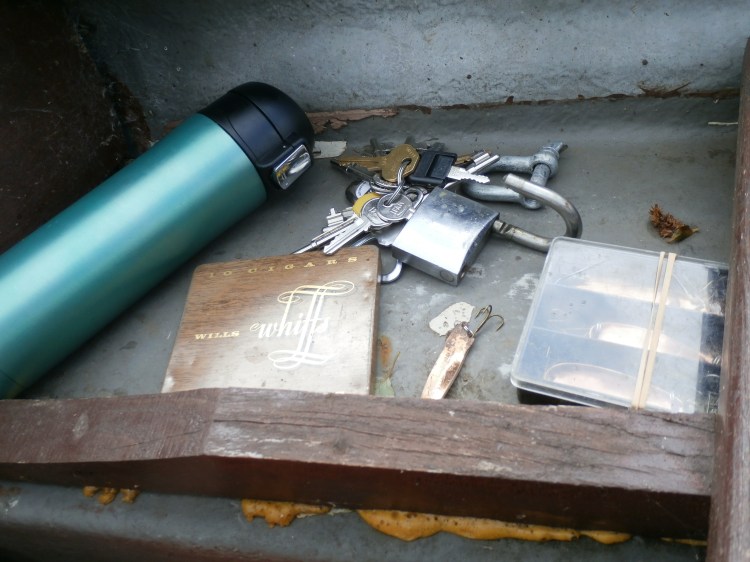 The shallows at Massbrook extend out into the main body of the lake for some considerable distance and I ploughed up and down them for a good hour without eliciting any sort of a response form the fish. I headed next to ‘Mary Robinson’s’ shore (we still call it that even though the ex-President no longer owns that land). There is a good lie at the first pin but just as I was coming up to it the Rapala on the right hand rod snagged the bottom. Mild panic ensured as I cleared the other rod but found the Finnish plug was well and truly stuck. I heaved in some slack and wound it around a tholl pin and hey presto! something gave and I recovered some line. The reason for the solid connection soon became clear, I had snagged another line. More pulling/cursing on my part finally freed this old line and I hauled in about 30 yards of very heavy braid. Also attached was a Toby T but to my disappointment it was only a Garcia model instead of a good Swedish one.