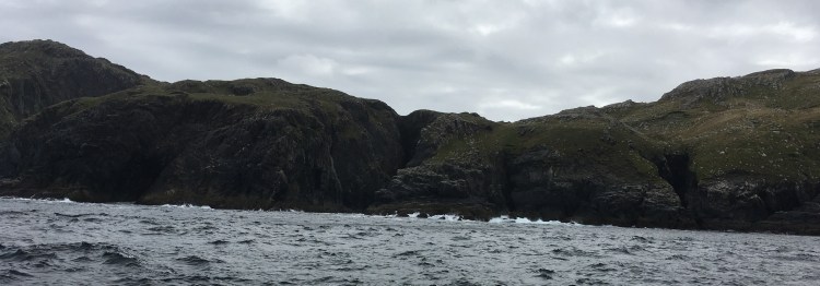 Gear and bodies transferred from the ferry to our boat and we were soon heading back out to sea. The journey out had given us a taste of the conditions we were going to have to embrace and sure enough the impressive swell kept up for as long as we were out. The strong wind whipped us along at a fair old pace and the 20 foot swell rocked us endlessly. These were challenging conditions and it was hard work just to keep you feet, let alone fish properly. The scenery was majestic, tucked under the cliffs as we were with the waves crashing and foaming on the rocks sometimes only a few yards away.