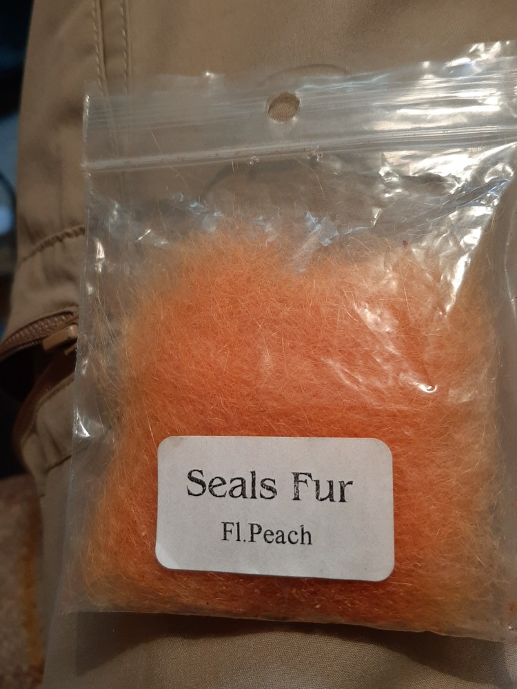 Dub the tying silk with seals fur dyed peach (I actually have some dyed fl. peach and it works well). Form a tapered body with the seal’s fur then wind the peach hackle down to the bend in open spirals.