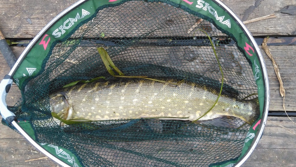 More groundbait, more waiting and re-casting, more nothing happening. I tried a bigger hook with numerous ears of corn on it but that didn’t work. I tried moving to the other end of the walkway and setting up there in a nice looking swim. That was a similar failure. In the end I gave up and packed away the gear. It was mid-afternoon so I would get back home in good time. If it hadn’t been for that suicidal pike I would have blanked. I know I caught a nice fish and I should be happy about that but it felt like cheating somehow. I was not fishing for pike and had set up to catch roach or bream. Beggars can’t be choosers I suppose.