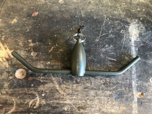 I am not an expert but from what I can gather you can cast the rake out with a rod and reel loaded with 30 pound breaking strain braid and slowly wind it back in again. Rather than mess about with a reel just to do that task I will try simply attaching a length of cord to the rake and lob it in by hand. A much bigger swivel needs to be fitted to handle the cord I plan on using. The rake itself is of very simple construction and looks like it is too small to be effective but I have read they are more than up to the job and are easier to lug around with you than the homemade efforts constructed out of a pair of garden rakes lashed back-to-back. My one won’t be able to stir up the bottom like the garden rakes do though so I might be missing out out that benefit.