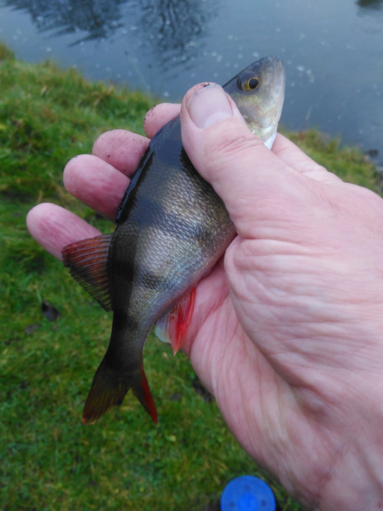It all goes quiet for a long time and I try searching along the bank but without success. Returning to where I started I pick up another three roach over the next hour, hardly scintillating fishing but hey, I am out in the fresh air so I don’t mind. All the time the mist gets heavier and heavier, soaking everything. In the end I decided that the return for getting so wet is not worth it and I pack up. Four roach, one roach/rudd hybrid and two perch for the session. I have had a lot worse days!