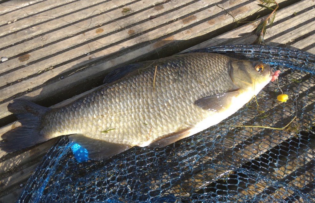 A skimmer put in an appearance and then it was back to the rudd again. By 6pm I decided to go back to the feeder so setting up a new rig I threaded a piece of artificial corn on to a hair rig to pop up the bait from the bottom slightly. Tappy little bites bothered me for a while (rudd) but I did manage a good bream on this set up plus some other small stuff. In the end I decided the noise of the swimfeeder hitting the water was too invasive so I went back to the float, this time a waggler shotted over depth and a size 10 hook baited with a bunch of maggots. Another skimmer, some roach and a solitary perch fell for this tactic. I lift bite saw me strike into a small tench but this lad managed to throw the hook. What is it about me and tench just now? I can’t seem to land one for love nor money.