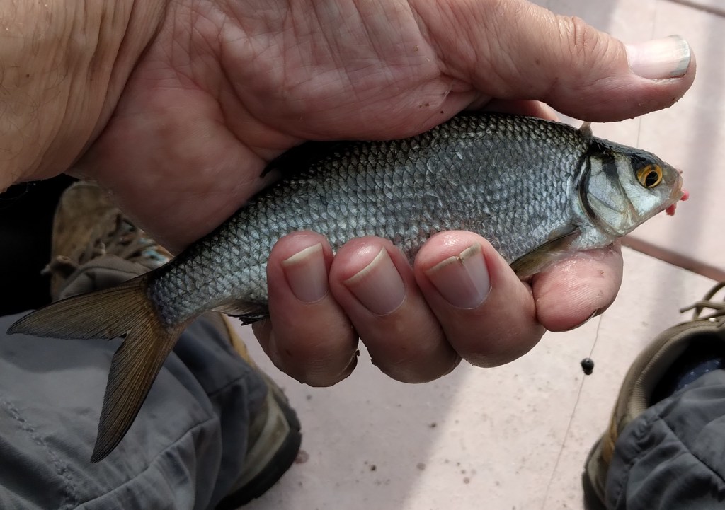 Almost from the first cast I was getting tappy little bites. I missed all of them from the first half hour, the hook coming back still with the maggots on it. I took this to mean it was tiddlers trying to eat the bait but unable to get a size 10 hook in their mouths. I toyed with dropping hook size but decide to persevere with the rigs as they were. Eventually I struck into a small fish and out came a skimmer of a few ounces. The bites continued unabated for a couple of hours with me missing most of them and winding in skimmers when I did connect.