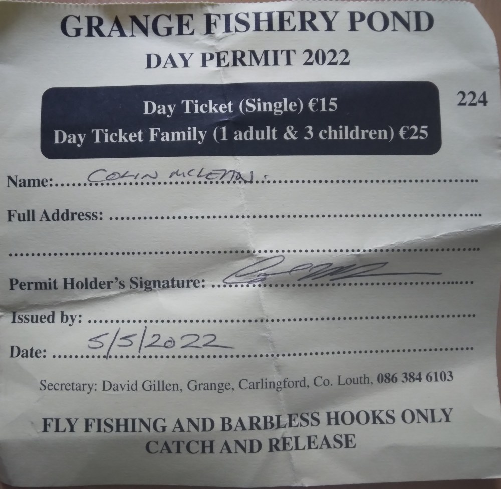 My dislike of Facebook is deep-rooted, I never ‘got’ it. How people can spend their lives posting the minutia of their existence like what they are eating or wearing beats me. Then again I expect most people would regard my posting the details of my inconclusive fishing trips as pretty odd so it just goes to show we are all different. Casting my prejudices aside, for once I turned to FB and hey-presto! A place called The Grange Trout Fishery popped up. They have a page there which gave some information about the small lake behind a shop in Carlingford. I read every word and admired their photos of impressively large brown and rainbow trout. The rules were helpfully listed and the whole package suggested this was just the place I had been looking for. So I made up my mind this would be the right venue and made my plans accordingly. Louth was on!