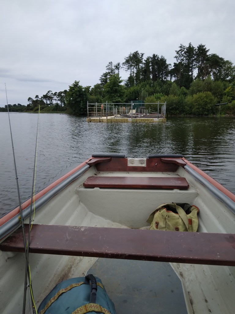 The first stop was the Centra shop in the little village of Kilmeaden where you buy your permits. €25 for the day permit then another €15 for the hire of a boat. I know that is not much really but it felt like a lot of money given that much of the project has taken me to free or ridiculously cheap venues up until now. The money was handed over with as much grace as I could muster and in return I had my permit for the day ahead and a small key on a large fob. Back in the car again it was only a few more minutes behind the wheel until I reached the car park and my first glimpse of Knockaderry. A fine floating harbour is home to a number of small, sturdy boats. The lough stretches away to the right, the dam is to the left. Thinking of a whole day ahead on the oars I decided unless I had a very good reason I’d fish close to the harbour (that changed!).