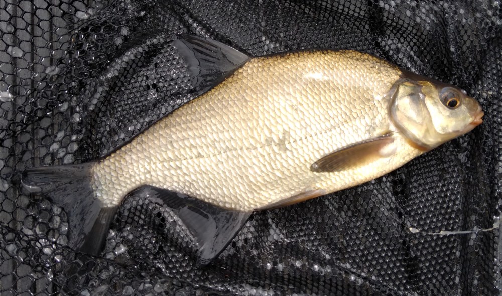 The afternoon would be a typical one for me on this lough. A quiet start then some rattles on the leger resulting in a couple of small perch between some missed bites. Small roach nibbled the dodgy maggots and I land a few of them but it was pretty slow if truth be told. About 2pm the leger rod pulled over and I wound in a bream of a couple of pounds. He managed to cover the hook length in so much slime I had to cut it off and tie on a new one but I was soon back in action again. Some skimmers appeared and the usual litany of missed bites ensued but I did land a few on the worm. I had been reduced to poking around in the box for the last few remaining maggots which by now was full of deep red casters.