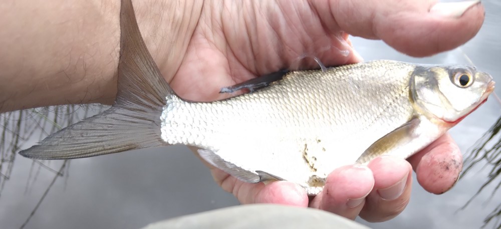Footsteps in the distance grew closer. Turning, I saw a fellow angler coming my way and he came up for a chat. Paul fishes here a lot and we spoke for a while. When I mentioned my dilemma with the elderly maggots he offered me some of his as he had plenty. I took him up on his generous offer and he went over to fish the stand next to me. On his first cast he pulled out a good roach.