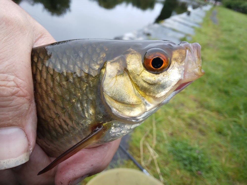 ‘Soft.’ That’s what they call it here. In Scotland we would say it was pelting cats and dogs, in London they would be building an ark. It was a grand soft evening so I ventured out with the rods in the bucketing rain and drove up to Keenagh in county Longford. Here, a basin on the Royal canal is normally busy but I figured the weather would keep all but the hardiest (or foolish) away. So I splashed my way along the back roads and turned into the little car park just as the rain eased off a little. This might no be so bad after all I mused as I tackled up. Picking a spot at random the usual palaver of ground baiting, threading rings and generally setting up too me a while but eventually I was fishing. The very first cast resulted in a good rudd which grabbed the maggots before they could get the the bottom. This proved to be a precursor for the session.