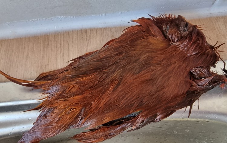 Sometimes the colour will be nothing like the one you want! This can happen for a huge range of reasons, so rather than getting hung up about it just clean everything thoroughly and try again. Too much dye, not enough mordant, too long in the pan and poorly cleaned raw materials are some of the most likely causes but frequently I just put it down to an act of God. Often, the results of a failure will be a muddy brown shade, which is actually quite useful for nymphs and some wet patterns so don’t chuck out any oddities.