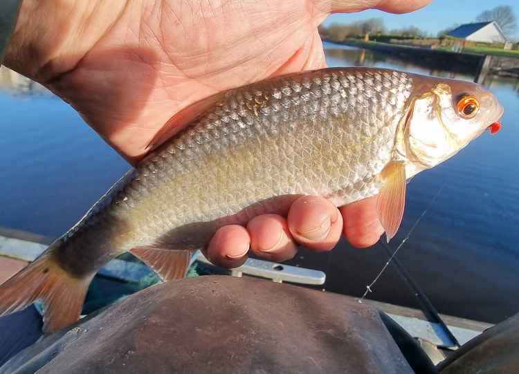 What followed was a lovely session. The roach and hybrids responded well to my steady stream of loose feed and bites were frequent, if hard to hit. The float would dip very fast and if I didn’t lift in time the roach was gone, usually with my bait. I reckon my hook up ration was as low as one in five. Occasionally, the bite was more positive and resulted in a solid hook hold, but the quick bites all lip hooked. Why the roach were biting like this is a mystery to me, but it was fascinating fishing. Sprinkled in amongst the roach were a few perch, small lads except for one good one.