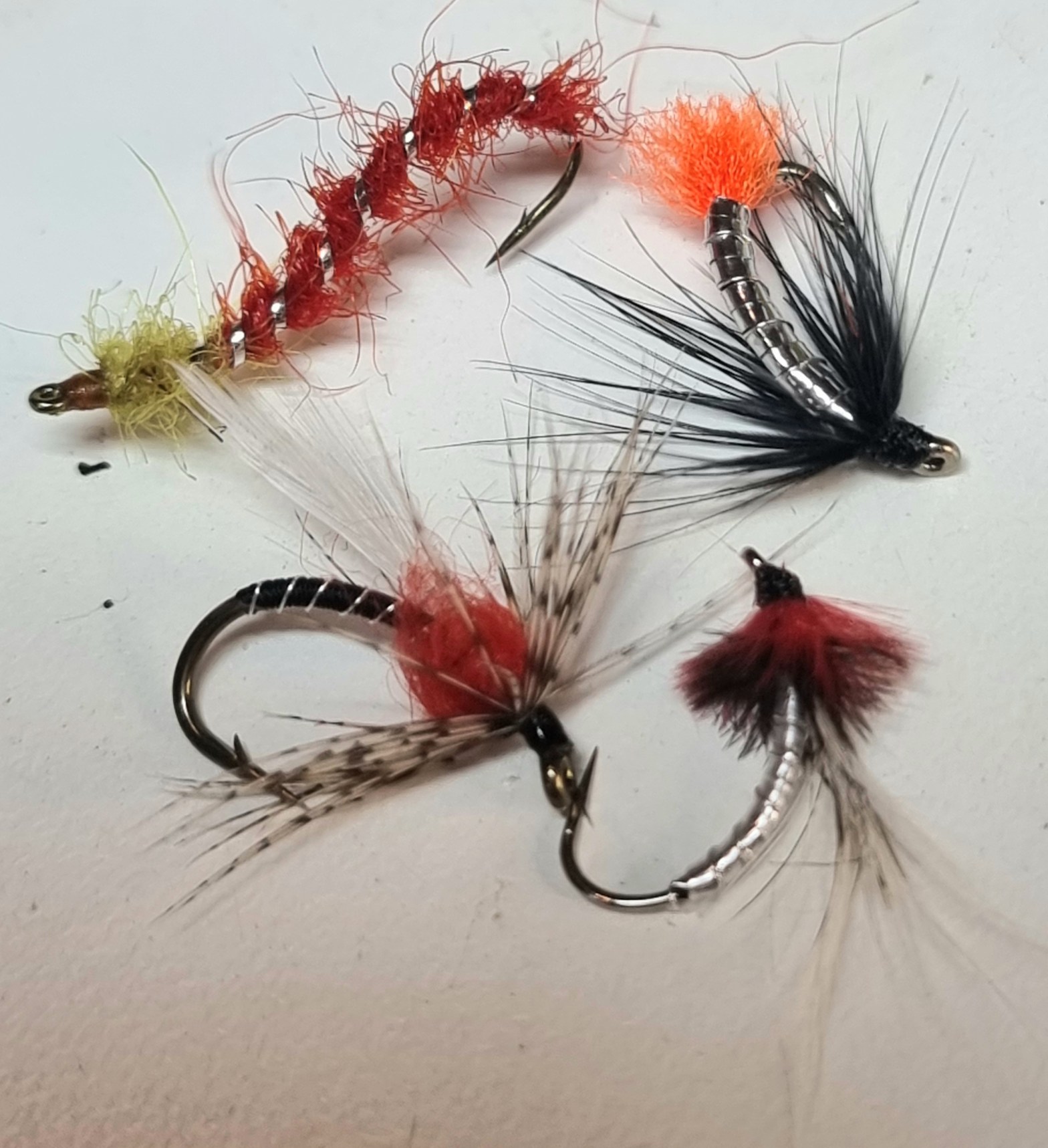 Not really a duckfly I suppose, but this is a bloodworm pattern from lough Sheelin. It was invented by Stuart McTeare and is fished very slowly on a floating or intermediate line. TBH, I have only ever caught one trout on this fly, but I have not used it much. Very simple to tie, use a B830 hook in sizes 8 or 10 and golden olive silk. The rear two thirds of the body is red seal’s fur and the front third is pale olive seal’s fur. The whole lot is ribbed with fine, flat silver tinsel. For this season, I have tied some of these on a Daiichi 1770 swimming nymph hooks.
