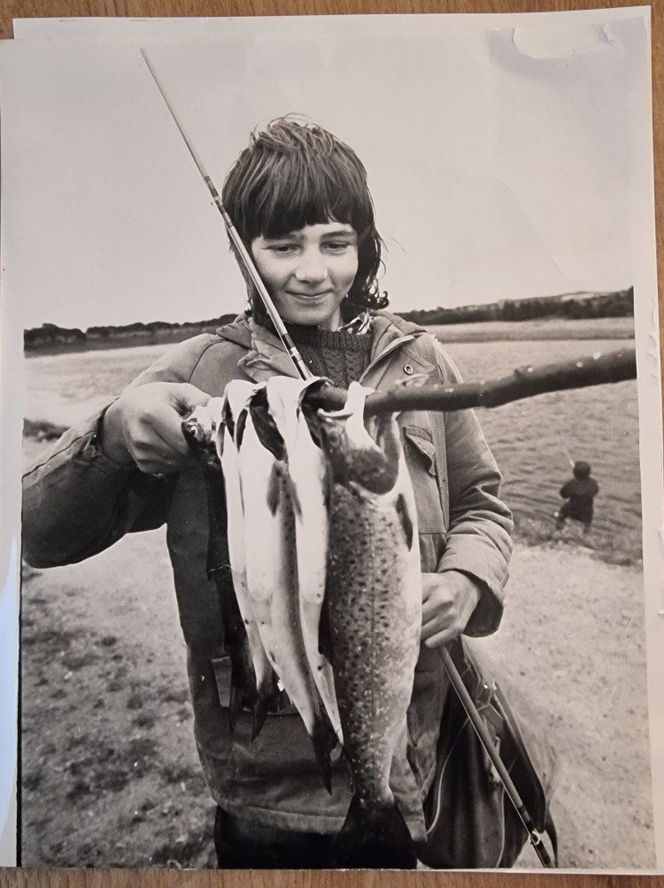 Dear Lord! Look at the state of me back then. That parka was too small for me and I wrung a few more seasons out it after that. The jumper was green and knitted by my mother. The wonky fringe suggests she had cut my hair too! The rod was a nine foot six fibreglass and the bag on my shoulder held my sandwiches, a flask and my one and only fly box. The biggest trout would have been around a pound-and-a-quarter, the finnock were all less than a pound in weight, typical for the Dee at that time. It is a cliché, but they were very happy days.