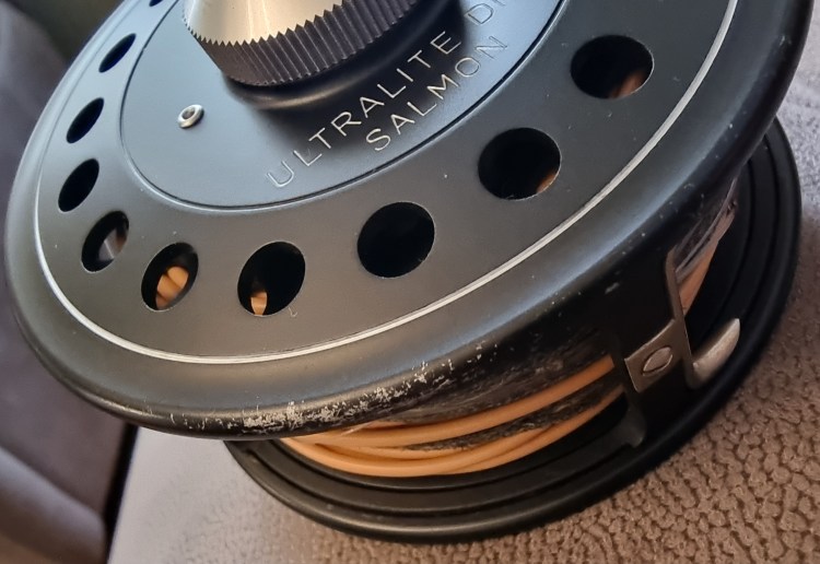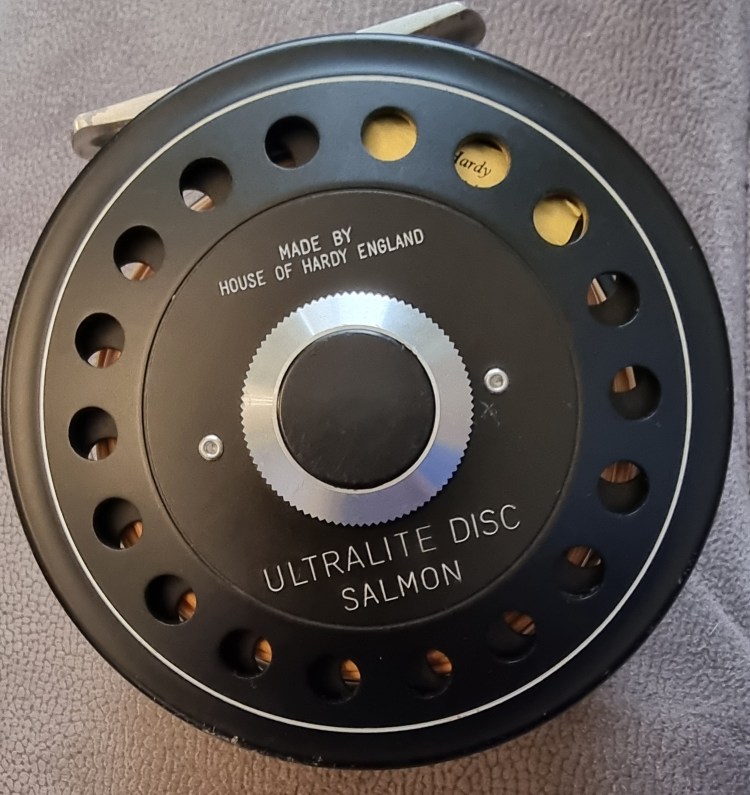 A Hardy Ultralite Disc Salmon fly reel. Great reel. Seen a bit of action this one and it has a wee scrape on the bottom of the cage (see photo below), but it is still silky smooth. Comes with a Hardy neoprene pouch. €150 plus postage for this excellent salmon reel.